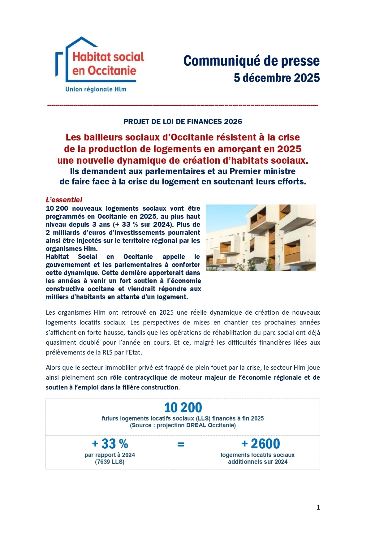 Habitat Social en Occitanie, qui rassemble 67 organismes Hlm sur l’ensemble des 13 départements, affirme l’importance du logement social comme levier de développement territorial, de cohésion sociale et de soutien à l’économie régionale. Avec plus de 331 500 logements sociaux et près de 690 000 personnes logées, le secteur Hlm contribue de manière décisive à la réponse aux enjeux du logement et à la vitalité des territoires occitans.​